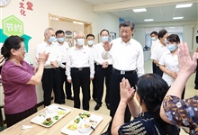 - △8月17日,習(xí)近平總書記在牡丹社區(qū)老年餐廳,同正在用餐的老人們親切交流。今年8月,習(xí)近平總書記走進遼寧沈陽市牡丹社區(qū)養(yǎng)老服務(wù)中心?!拔襾砜纯矗蠹叶汲孕┦裁床??!薄昂茇S盛?。∵@要是市場價,可不便宜吧?”總書記笑著同大家打招呼。“60歲以上一頓10塊,80歲… [詳細]2022-10-04