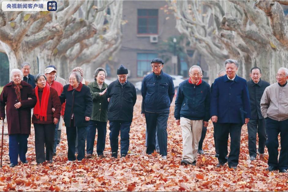 △2015年11月,部分西遷老同志走在西安交大興慶校區(qū)梧桐道上