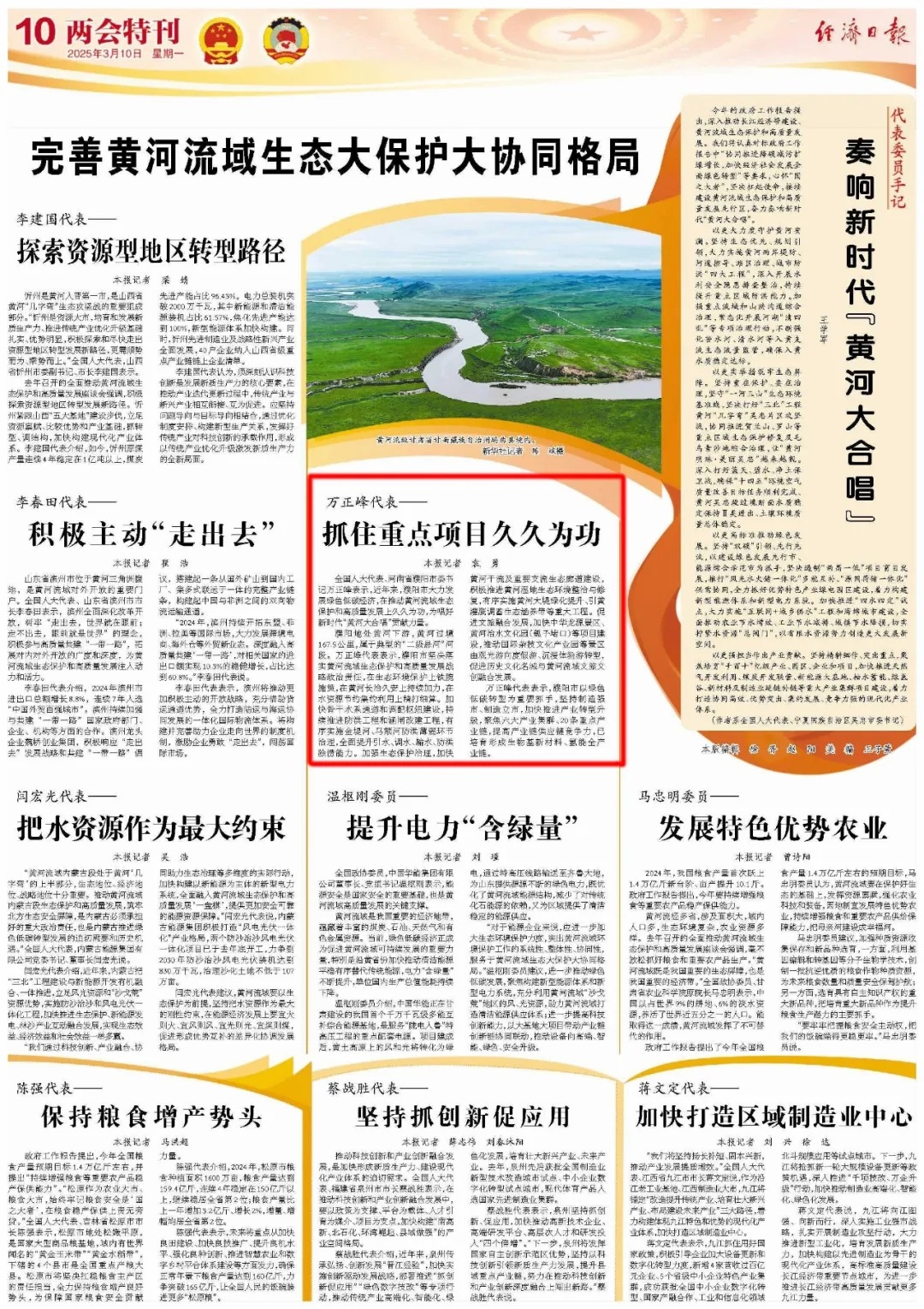 全國人大代表、河南省濮陽市委書記萬正峰表示,近年來,濮陽市大力發(fā)展綠色低碳經(jīng)濟,在推動黃河流域生態(tài)保護和高質(zhì)量發(fā)展上久久為功,為唱好新時代“黃河大合唱”貢獻力量。濮陽地處黃河下游,黃河過境167.5公里,屬于典型的“二級懸河”河段。萬正峰代表表示,濮陽市堅決落實黃河流域生態(tài)保護和高質(zhì)量發(fā)展戰(zhàn)略政治責(zé)任,在生態(tài)環(huán)境保護上鐵腕施策,在黃河長治久安上持續(xù)加力,在水資源節(jié)約集約利用上精打細算。加快骨干水系通道和調(diào)配樞紐建設(shè),持續(xù)推進防洪工程和涵閘改建工程,有序?qū)嵤┙鸬毯?、馬頰河防洪薄弱環(huán)節(jié)治理,全面提升引水、調(diào)水、輸水、防洪除澇能力。加強生態(tài)保護治理,加快黃河干流及重要支流生態(tài)廊道建設(shè),積極推進黃河濕地生態(tài)環(huán)境整治與修復(fù),有序?qū)嵤S河大堤綠化提升、引黃灌溉調(diào)蓄生態(tài)涵養(yǎng)帶等重大工程。促進文旅融合發(fā)展,加快中華龍源景區(qū)、黃河治水文化園(瓠子堵口)等項目建設(shè),推動國際雜技文化產(chǎn)業(yè)園等景區(qū)由觀光游向度假游、沉浸體驗游轉(zhuǎn)型,促進歷史文化名城與黃河流域文旅文創(chuàng)融合發(fā)展。萬正峰代表表示,濮陽市以綠色低碳轉(zhuǎn)型為重要抓手,堅持制造強市、制造立市,加快推進產(chǎn)業(yè)轉(zhuǎn)型升級,聚焦六大產(chǎn)業(yè)集群、20條重點產(chǎn)業(yè)鏈,提高產(chǎn)業(yè)鏈供應(yīng)鏈競爭力,已培育形成生物基新材料、氫能全產(chǎn)業(yè)鏈。
