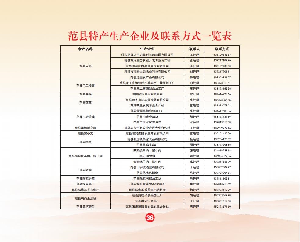 范縣特產(chǎn)生產(chǎn)企業(yè)及聯(lián)系方式一覽表