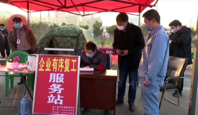 【縣政府副縣長?趙巖:范縣工業(yè)企業(yè)比較多,為了落實上級要求,使各企業(yè)有序復工做好準備,我們交通局和工信局在往來各個交通卡點設置了企業(yè)有序復工服務站,幫助解決企業(yè)運輸?shù)囊恍├щy和問題,同時,我們縣工信局指導各個企業(yè)在這個制定方案,排查人員以及各項疫情防控的工作措施上落實到位?!?/p>
